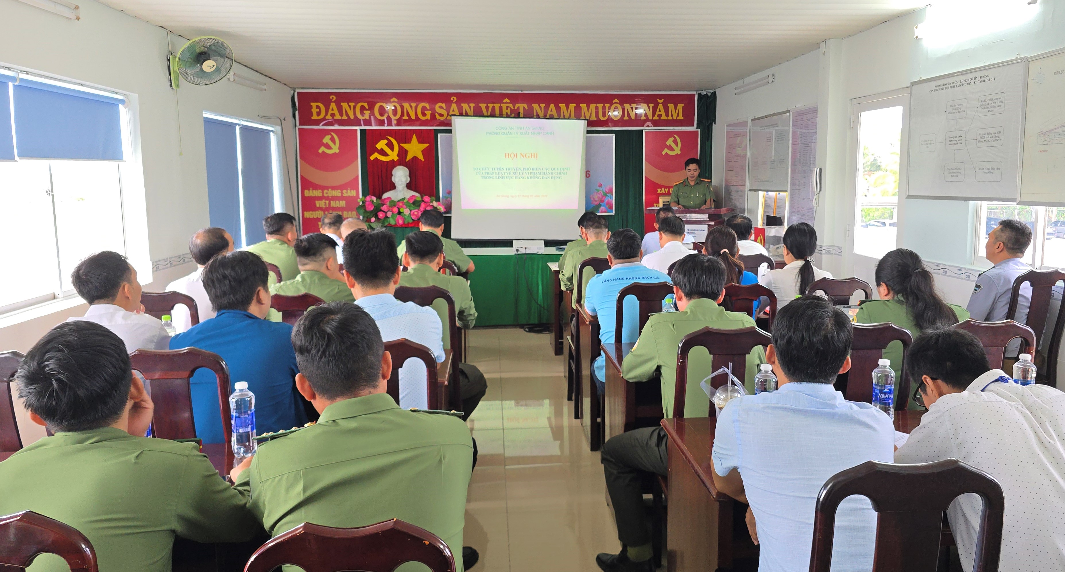 Ngày 11/02, Công an tỉnh An Giang phối hợp Cảng hàng không Rạch Giá tổ chức hội nghị tuyên truyền, phổ biến các quy định pháp luật về xử lý vi phạm hành chính trong lĩnh vực hàng không dân dụng cho hơn 40 cán bộ, nhân viên đang công tác, làm việc tại Cảng hàng không Rạch Giá.
