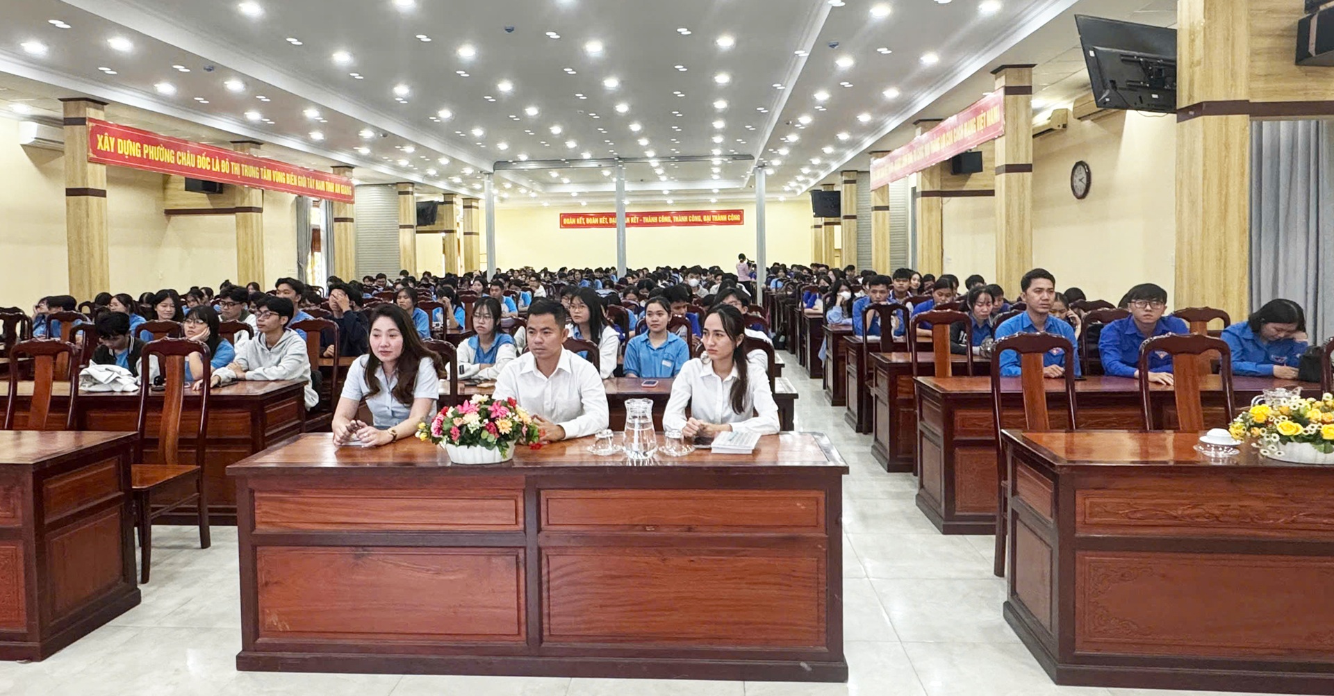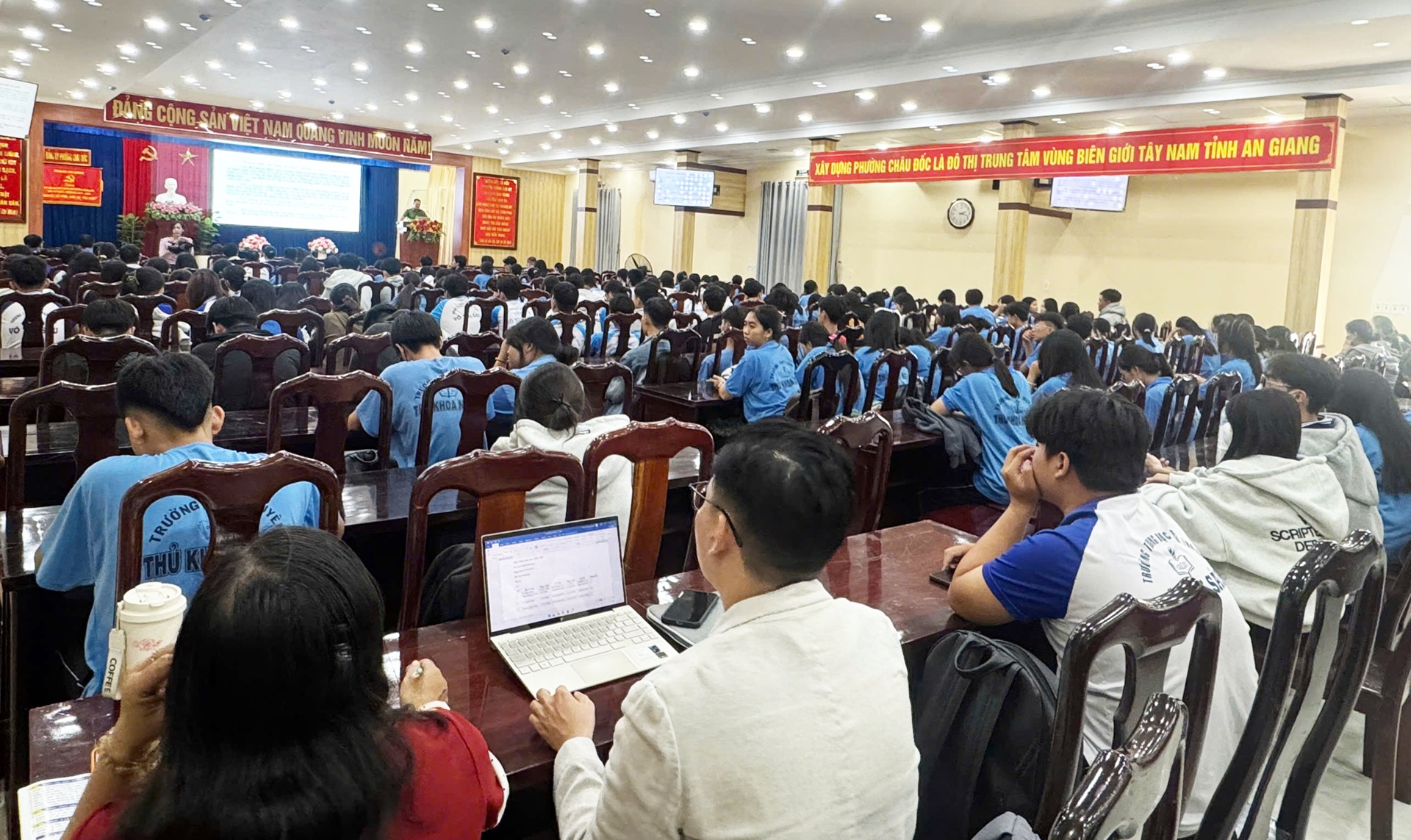 Chiều ngày 21/11/2025, tại Hội trường Đảng ủy phường Châu Đốc, Phòng Cảnh sát hình sự Công an tỉnh An Giang phối hợp Đảng uỷ phường Châu Đốc tổ chức Hội nghị tuyên truyền phòng chống tội phạm mua bán người, xâm hại trẻ em và tội phạm liên quan đến người dưới 18 tuổi cho hơn 400 em học sinh của các Trường THPT chuyên Thủ Khoa Nghĩa; Trường THPT Võ Thị Sáu và Trường phổ thông Dân tộc nội trú.