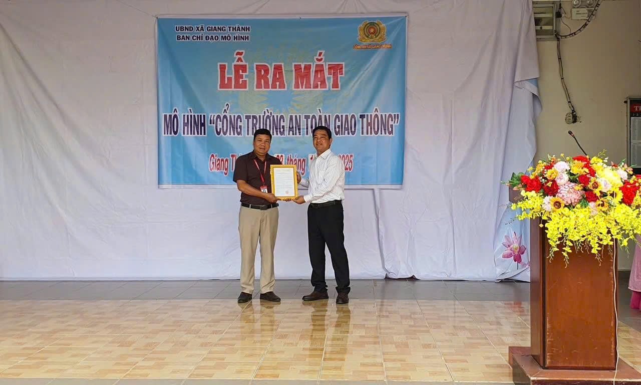 Vừa qua, UBND xã Giang Thành phối hợp với Trường THPT Thoại Ngọc Hầu và Công an xã Giang Thành tổ chức Lễ ra mắt mô hình “Cổng trường An toàn giao thông”.
