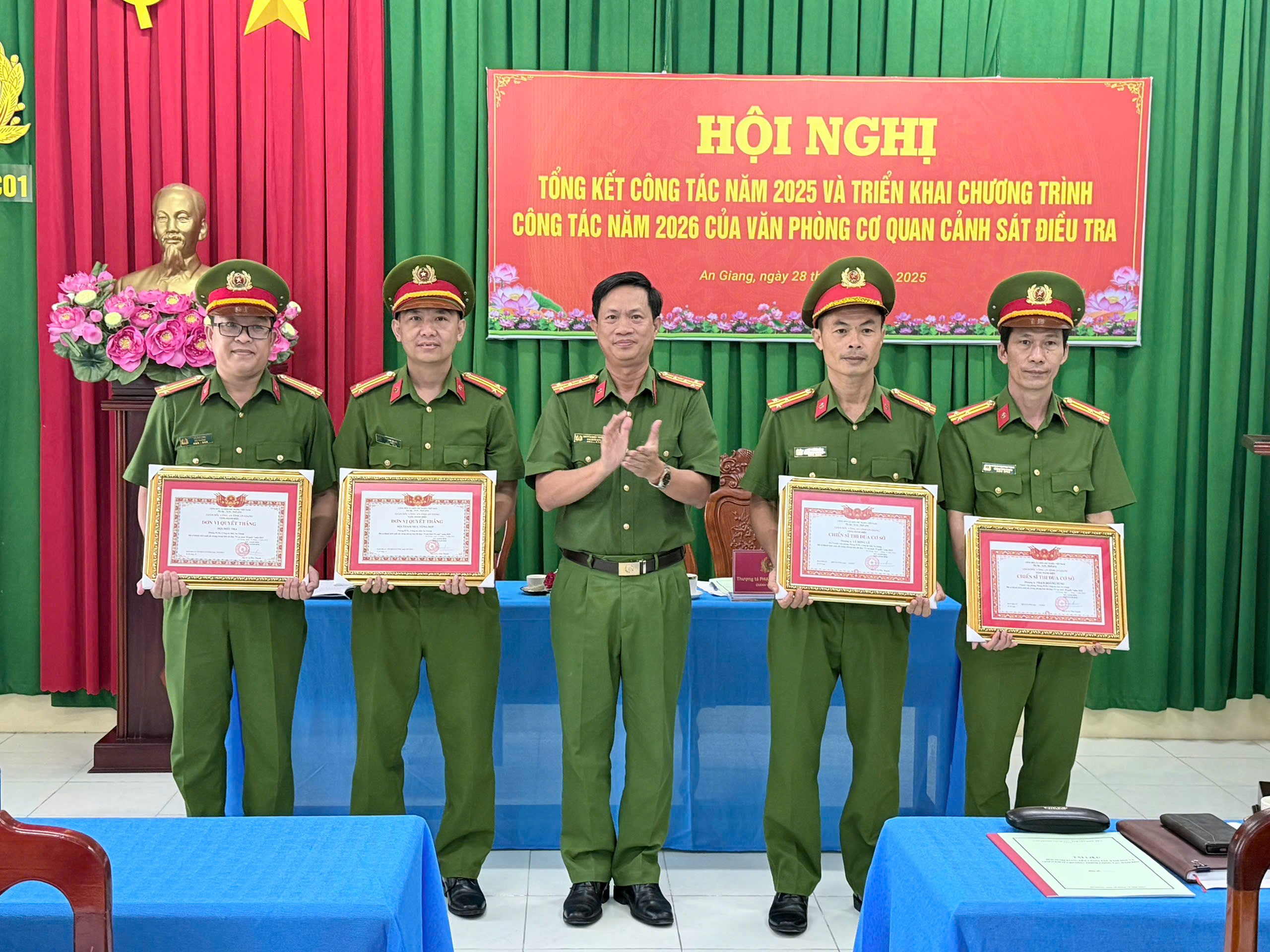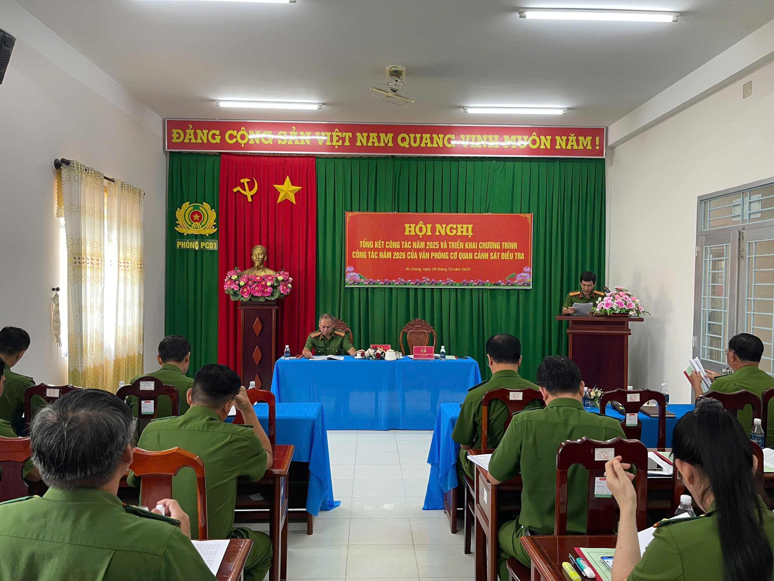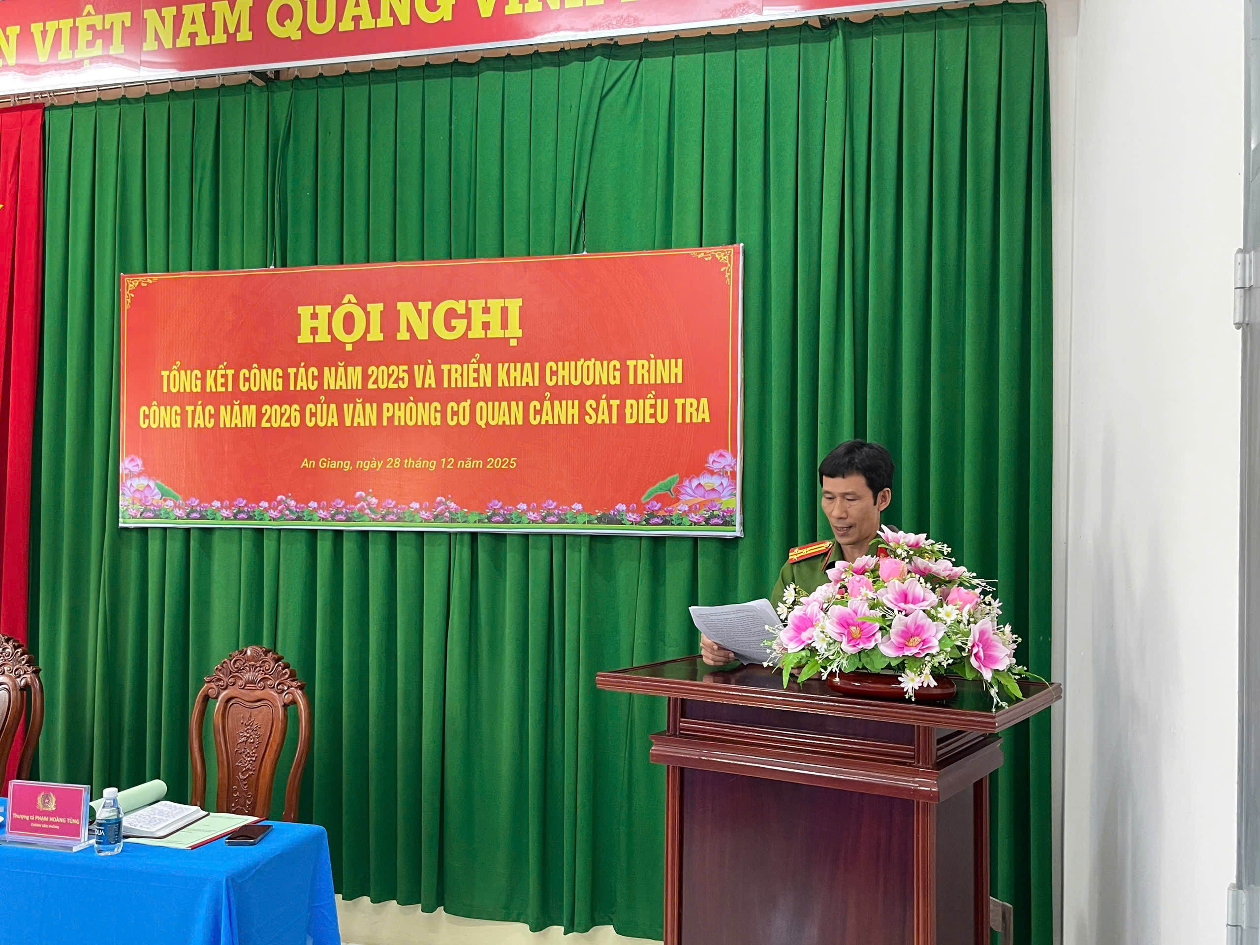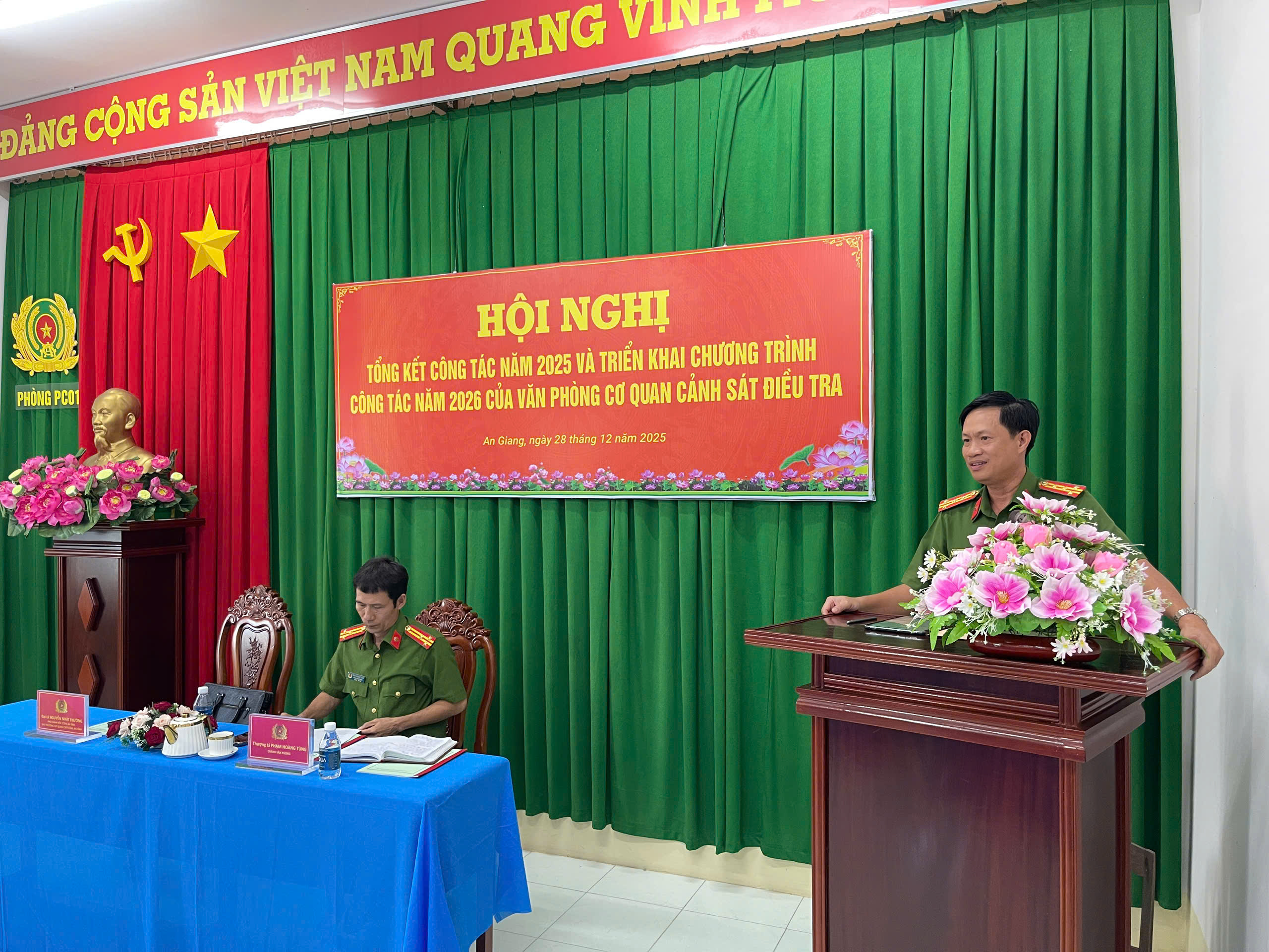 ‎Vừa qua, Văn phòng Cơ quan Cảnh sát điều tra Công an tỉnh An Giang đã tổ chức Hội nghị tổng kết công tác năm 2025 và triển khai chương trình công tác năm 2026, đồng chí Đại tá Nguyễn Nhật Trường, Phó Giám đốc, Thủ trưởng Cơ quan Cảnh sát điều tra Công an tỉnh đến dự và chỉ đạo Hội nghị.