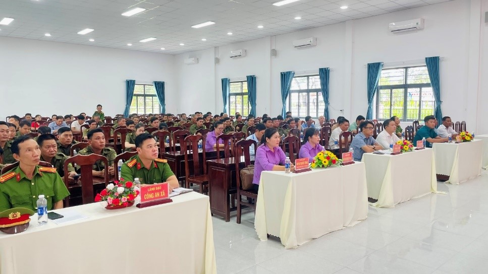 Chiều ngày 24/12, tại Hội trường UBND xã đã tổ chức Lễ công bố Quyết định của Chủ tịch UBND xã về việc kiện toàn Tổ Bảo vệ an ninh, trật tự và công nhận Tổ trưởng, Tổ phó, Tổ viên Tổ Bảo vệ an ninh, trật tự đối với 19 ấp. Tham dự buổi Lễ có đồng chí Lý Thành Luân, Phó Bí thư Đảng ủy – Chủ tịch UBND xã; đồng chí Huỳnh Thị Diễm Trang, Phó Bí thư Đảng ủy – Chủ tịch HĐND xã; đồng chí Trung tá Cao Hùng Tâm, Ủy viên Ban Thường vụ Đảng ủy – Trưởng Công an xã, cùng các đồng chí lãnh đạo các ngành, đoàn thể xã, Ban lãnh đạo các ấp, Hiệu trưởng các điểm trường, cán bộ, chiến sĩ Công an xã và 59 đồng chí là Tổ trưởng, Tổ phó, Tổ viên Tổ Bảo vệ an ninh, trật tự các ấp