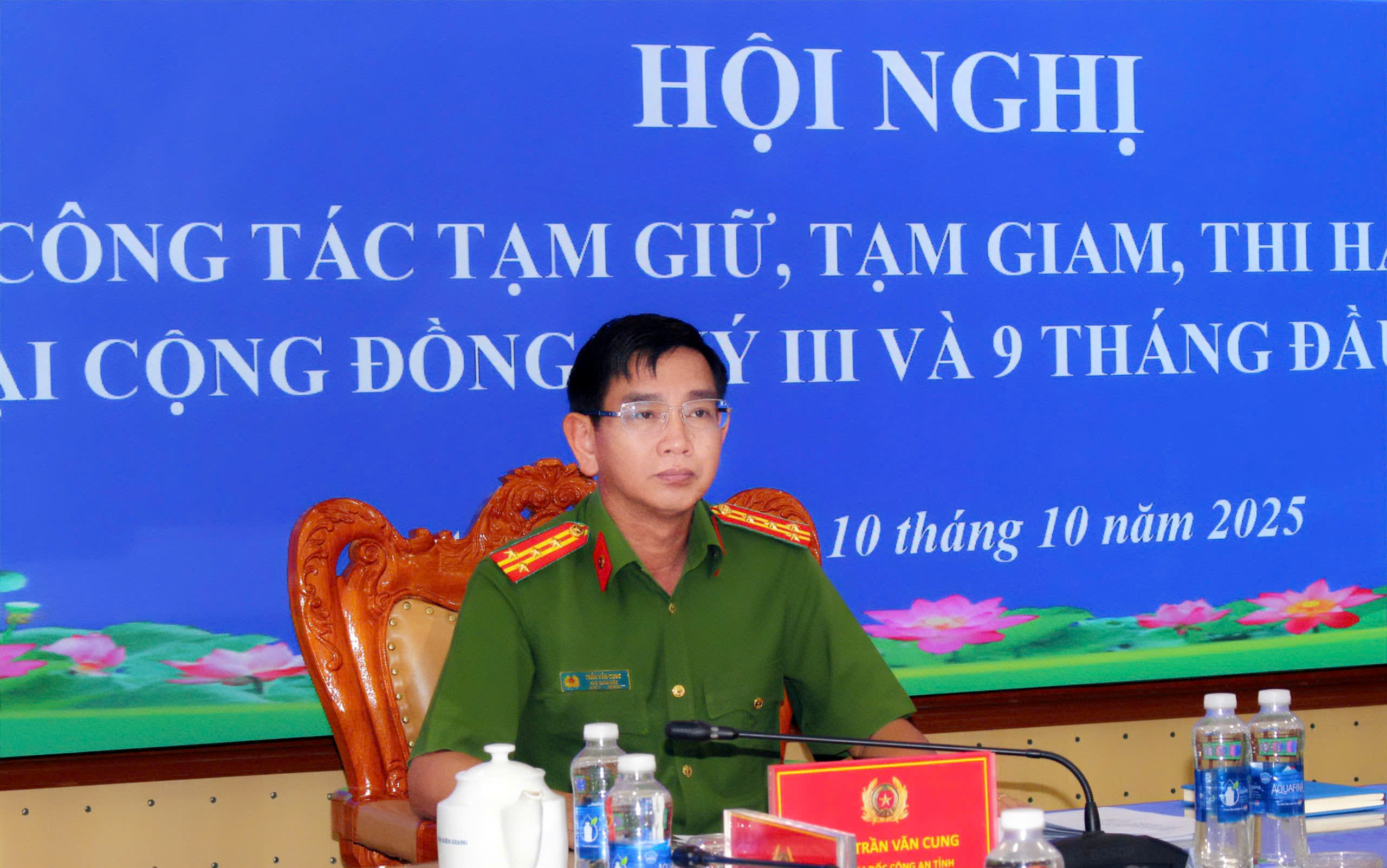 Ngày 10/10, Bộ Công an tổ chức Hội nghị sơ kết công tác quản lý giam giữ, cơ sở giáo dục bắt buộc, trường giáo dưỡng và thi hành án hình sự tại cộng đồng quý III và 9 tháng đầu năm 2025. Thượng tướng Lê Văn Tuyến, Thứ trưởng Bộ Công an, chủ trì hội nghị. Hội nghị được kết nối trực tuyến đến Công an các đơn vị, địa phương trên toàn quốc. Đại tá Trần Văn Cung, Phó Giám đốc Công an tỉnh dự và chỉ đạo tại điểm cầu Công an tỉnh An Giang.