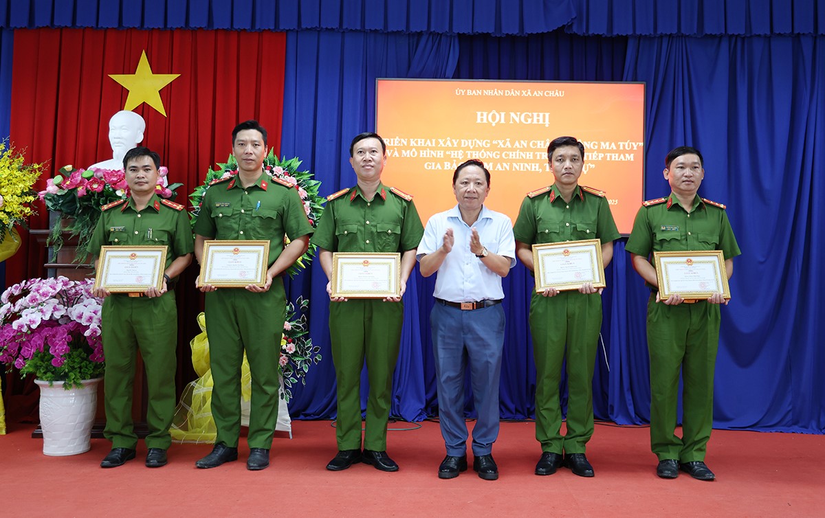 Dịp này, Chủ tịch UBND xã An Châu đã trao tặng giấy khen cho tập thể Công an xã An Châu và 04 cá nhân thuộc Công an xã An Châu vì có thành tích xuất sắc trong công tác phòng, chống tội phạm về ma tuý.