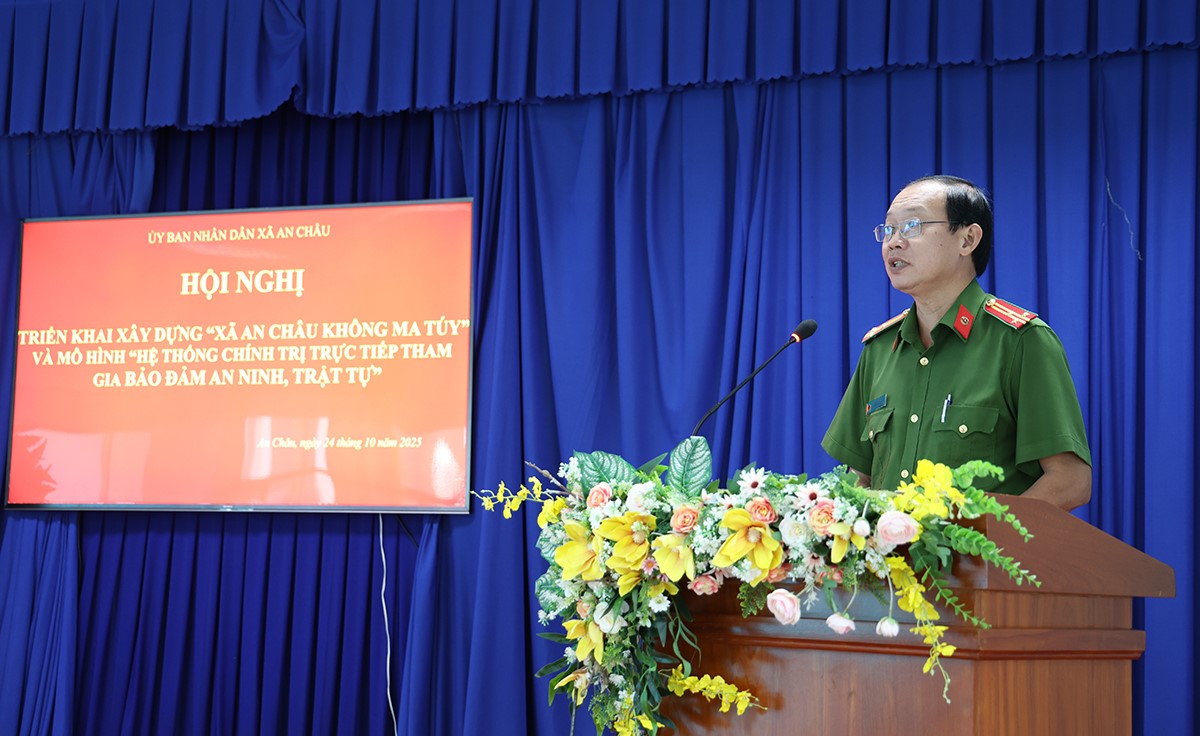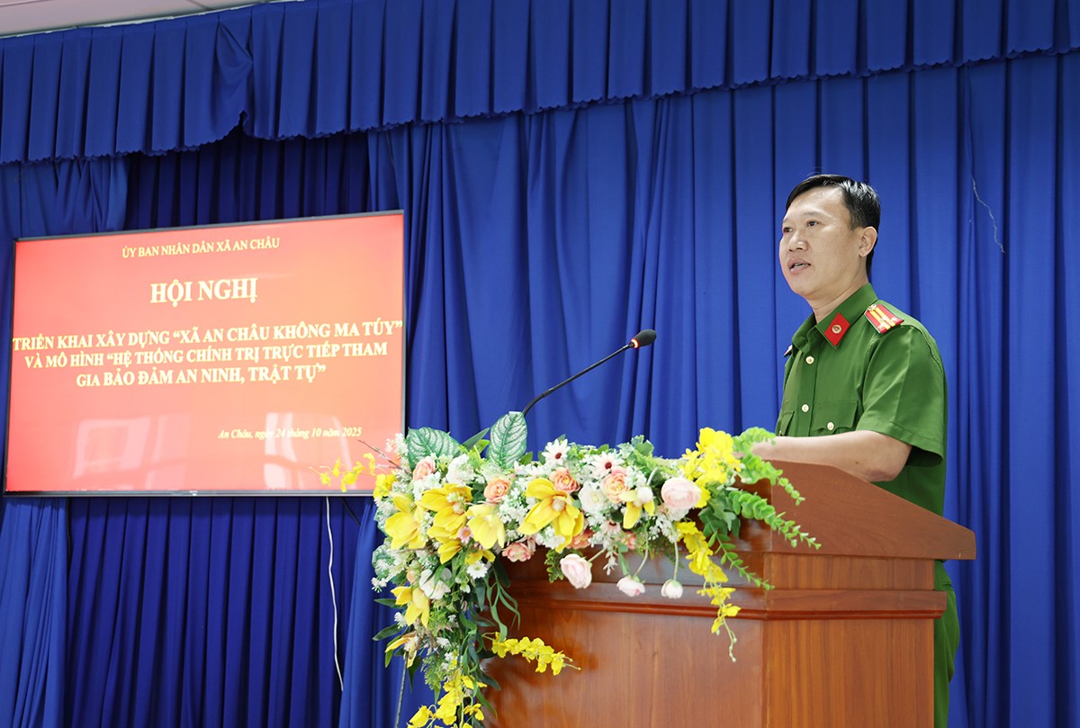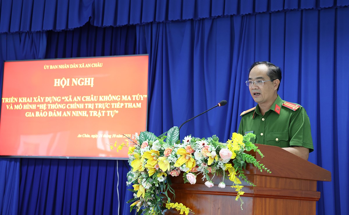 Cũng tại Hội nghị, Trung tá Nguyễn Thanh Mộng, Phó trưởng Công an xã đã triển khai các văn bản chỉ đạo của Thủ tướng Chính phủ, UBND tỉnh, Công an tỉnh về xây dựng “xã, phường, đặc khu không ma tuý” giai đoạn 2025 – 2030 trên địa bàn tỉnh An Giang cũng như Kế hoạch và các văn bản của UBND xã về xây dựng “xã An Châu không ma tuý” giai đoạn 2025 – 2030.